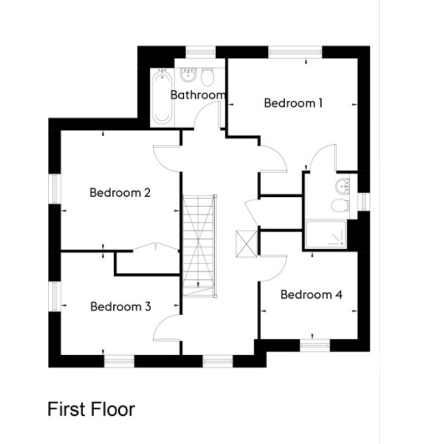 -    First floor      Bedroom 13.74m x 3.22m | 12’3” x 10’7” Bedroom 23.43m x 3.43m | 11’3” x 11’3” Bedroom 33.43m x 2.28m | 11’3” x 7’6” Bedroom 42.81m x 2.99m | 9’3” x 9’10” Bathroom2.19m x 1.99m | 7’2” x 6’6” Total Area: 129.97sqm / 1398.99sqft *All dimensions are approximate. Some house types are subject to variation in build/layout. Please speak to a Sales Advisor for more details.
