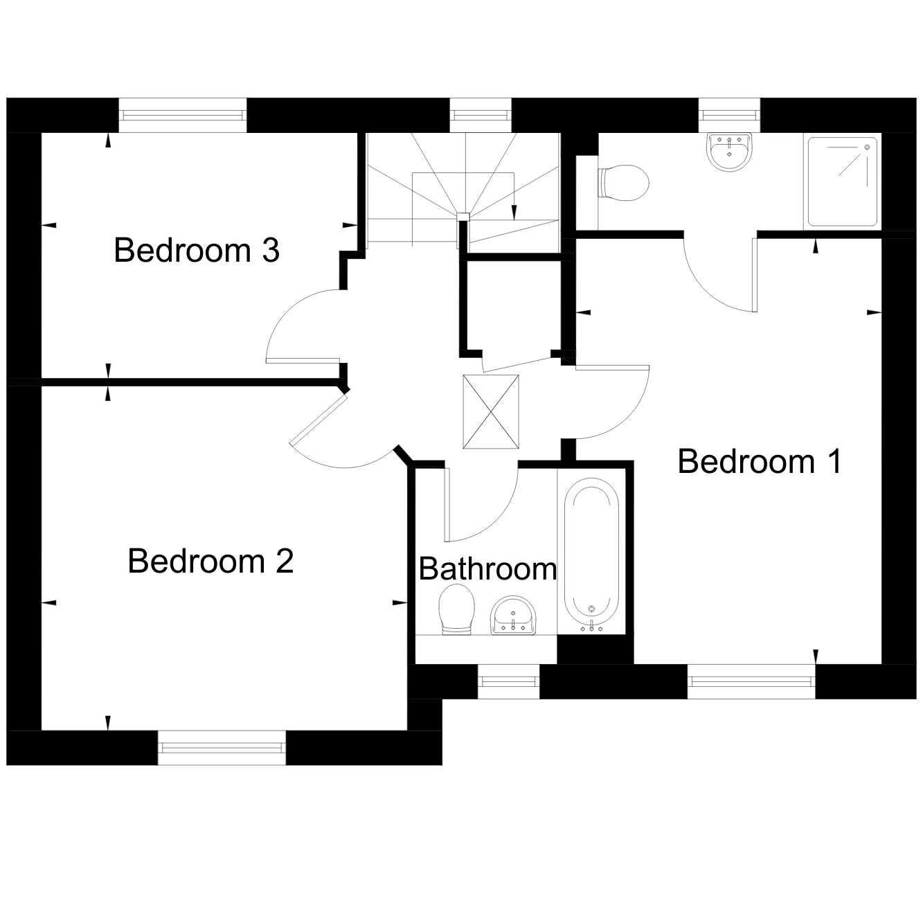 -    First floor      Bedroom 12.93m x 4.34m | 9’7” x 14’3” Bedroom 23.73m x 3.51m | 12’3” x 11’6” Bedroom 33.23m x 2.51m | 10’7” x 8’3” Bathroom2.15m x 1.70m | 7’1” x 5’7” Total Area: 98.01sqm / 1054.97sqft *All dimensions are approximate. Some house types are subject to variation in build/layout. Please speak to a Sales Advisor for more details.
